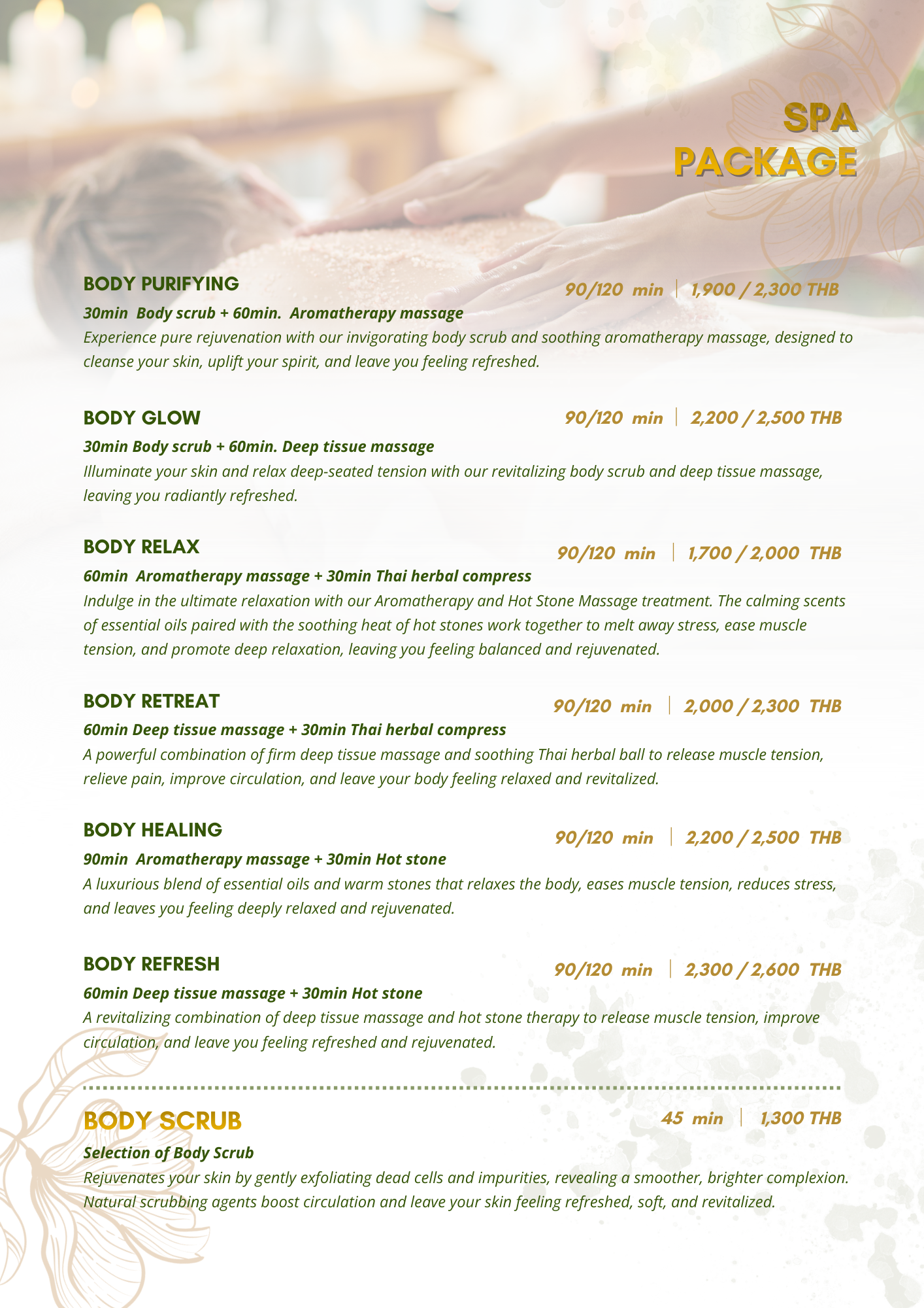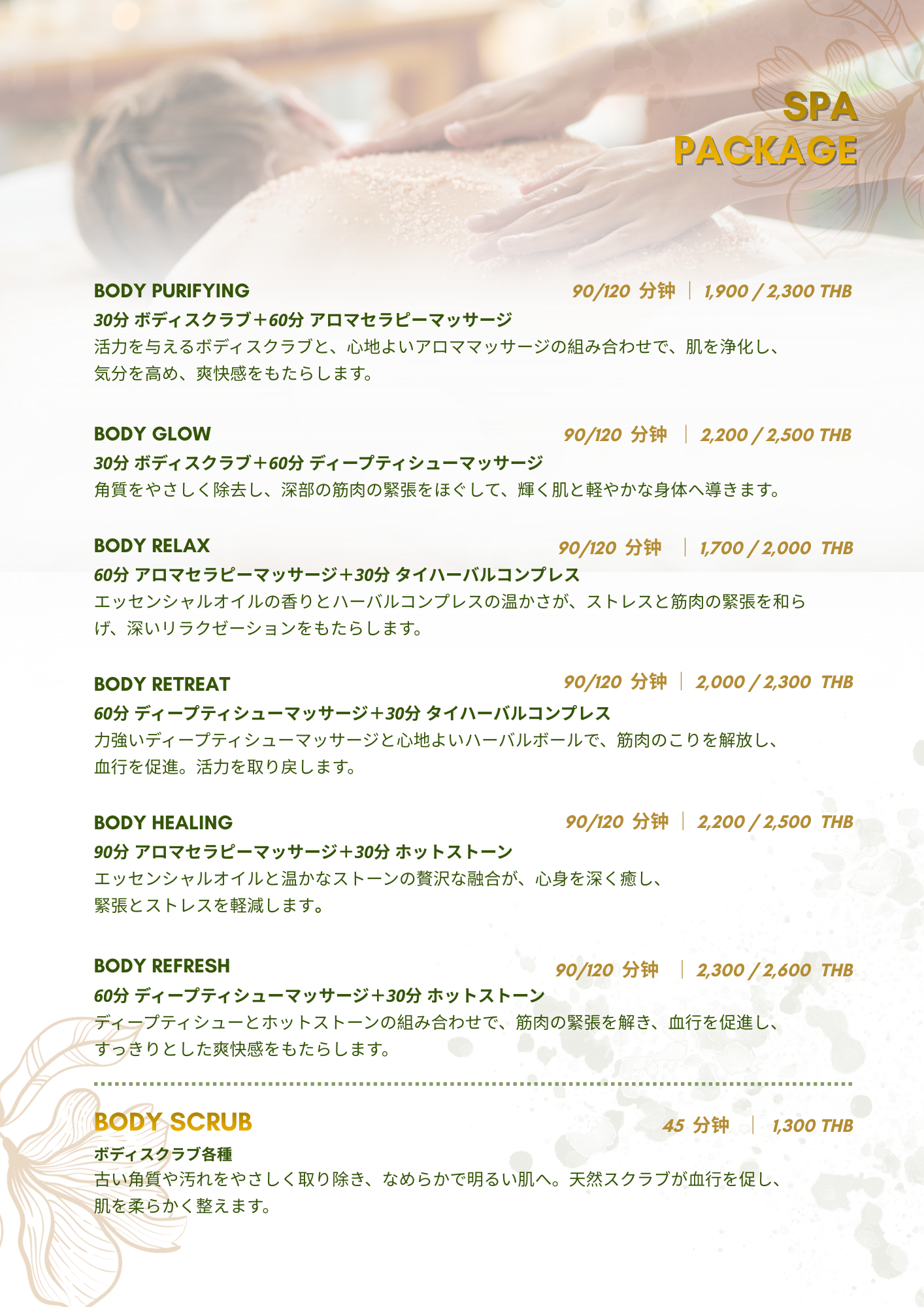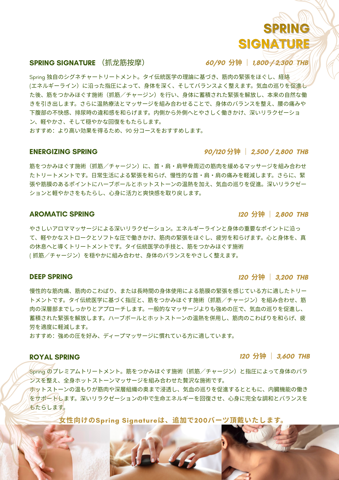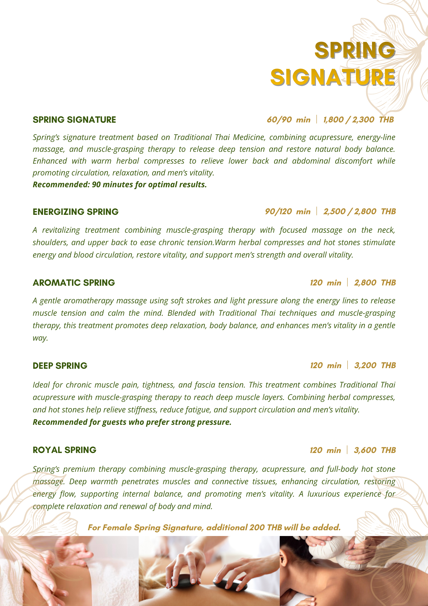 All Spring Signature treatments at the Phuket branch are subject to an additional charge of 100 THB.