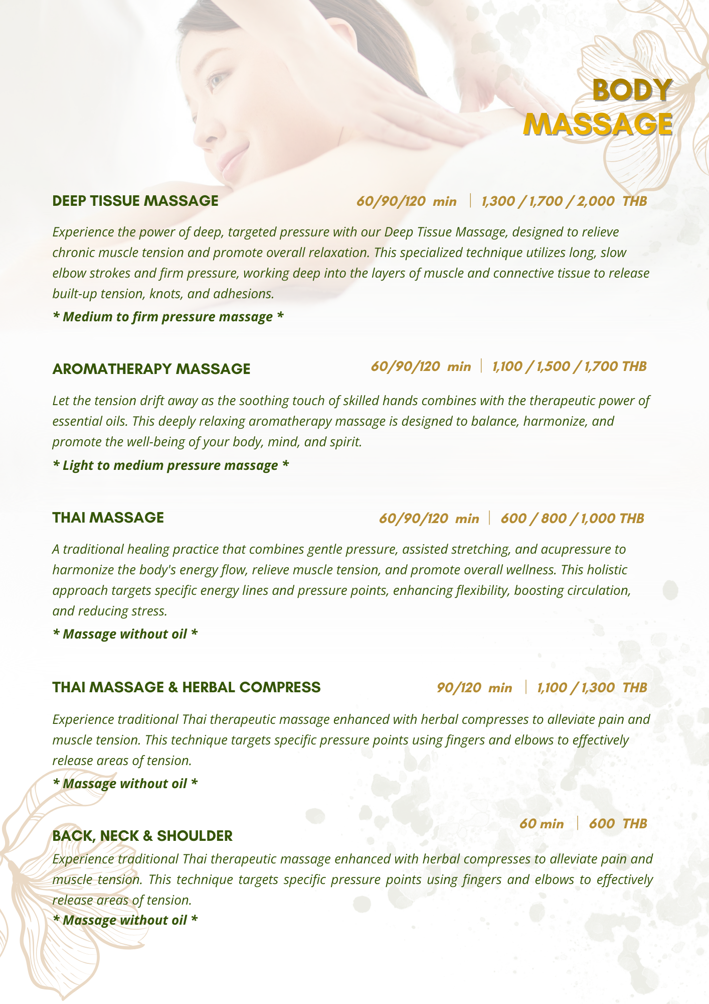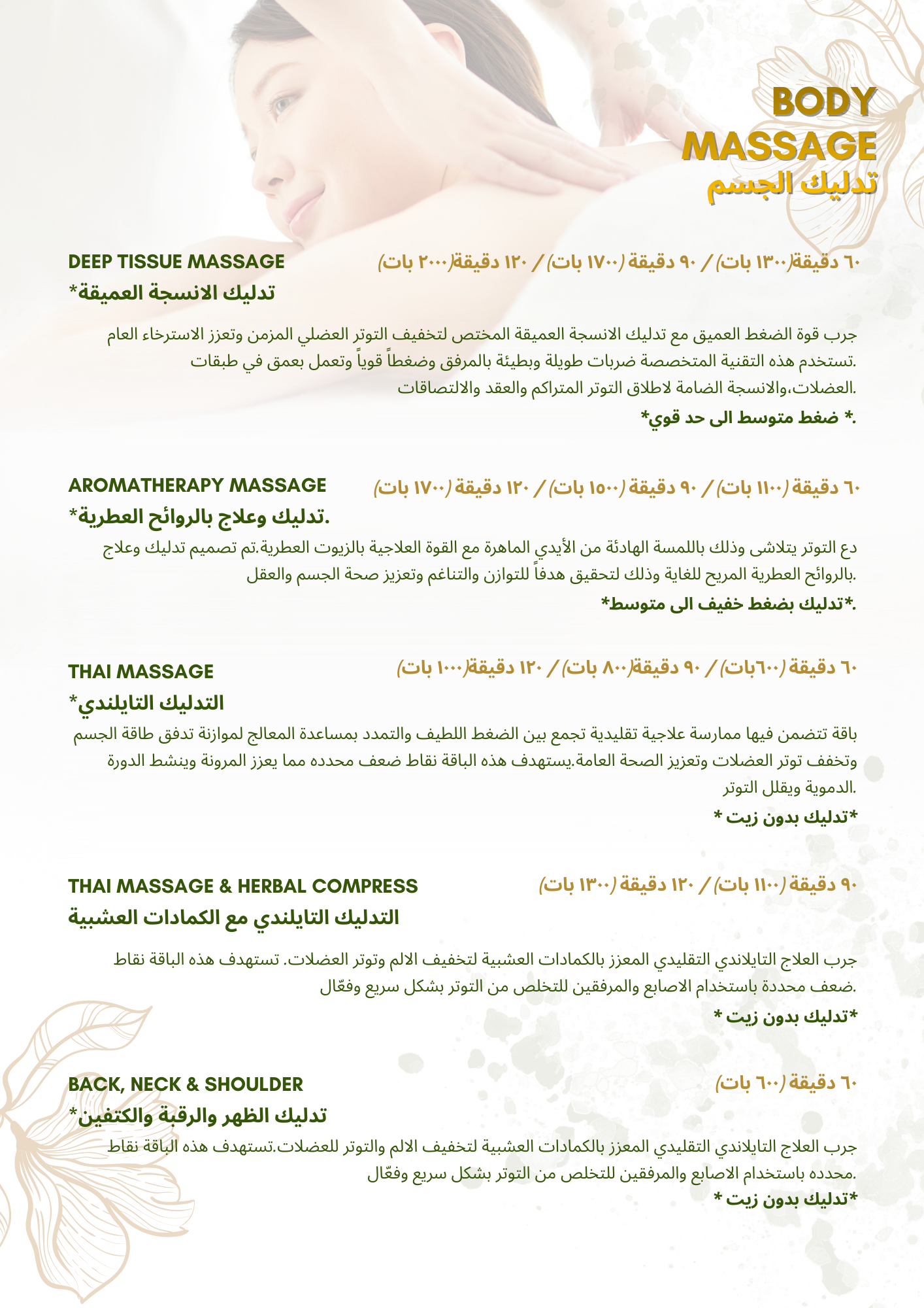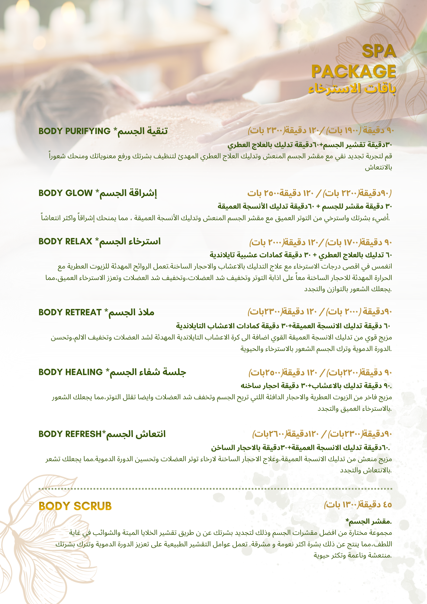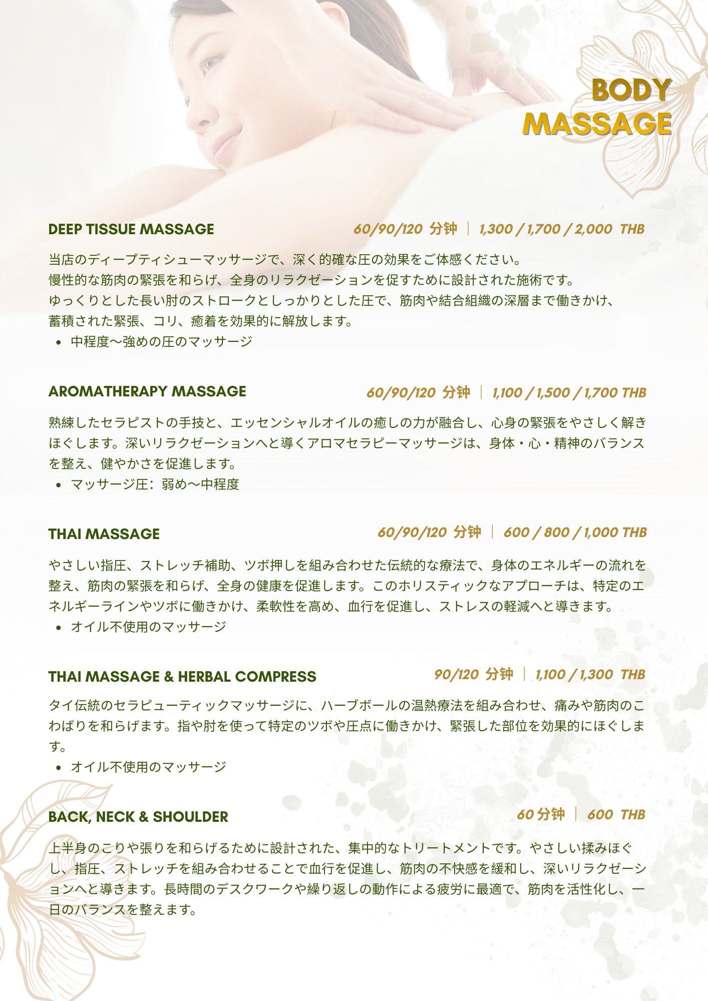 All Spring Signature treatments at the Phuket branch are subject to an additional charge of 100 THB.